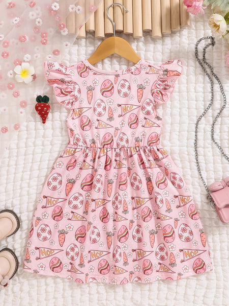 Younggirl Girls Pink Easter Sleeveless Mid-Length Dress