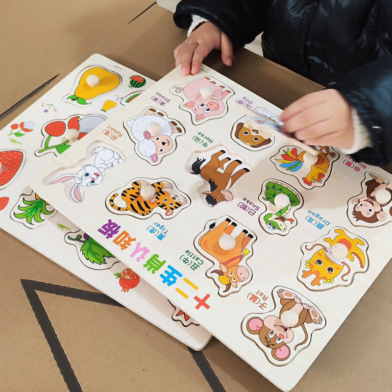 Zodiac Animal Wooden Puzzle Board Toy for 0-3Yrs Kids Smart!